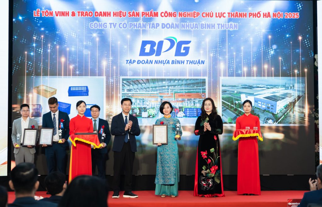 Sáng 15/11/2025, Tập đoàn Nhựa Bình Thuận (BPG) vinh dự được ghi nhận tại Lễ tôn vinh và trao danh hiệu sản phẩm công nghiệp chủ lực thành phố Hà Nội năm 2025 với sản phẩm sóng nhựa BPG – một trong những giải pháp nhựa tiên phong, chất lượng cao và có tầm ảnh hưởng lớn trong ngành công nghiệp Việt Nam. Đây không chỉ là sự ghi nhận về mặt sản phẩm, mà còn là minh chứng cho những nỗ lực bền bỉ, sáng tạo và cam kết phát triển bền vững của toàn bộ đội ngũ BPG trong suốt nhiều năm qua.